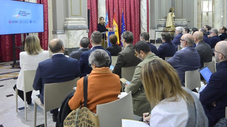 Previamente a la presentación de la comisión científica, representantes del Ayuntamiento y las dos universidades públicas, encabezados por la alcaldesa y los dos rectores, se han reunido en el marco de la comisión estratégica del Binomio y han abordado los avances realizados a lo largo de este año, “sabiendo que los efectos sufridos con motivo de la dana, nos han obligado replantear y reorientar el Binomio Universidad-Ciudad”, tal como ha recordado María José Catalá.