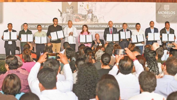 La gobernadora Margarita González Saravia encabezó la firma del convenio para la Agenda de Gobernanza Metropolitana entre el Gobierno del Estado y los municipios de Cuernavaca, Tepoztlán, Jiutepec, Temixco, Xochitepec, Emiliano Zapata y Huitzilac, con el objetivo de consolidar una ruta común de desarrollo para la zona metropolitana.